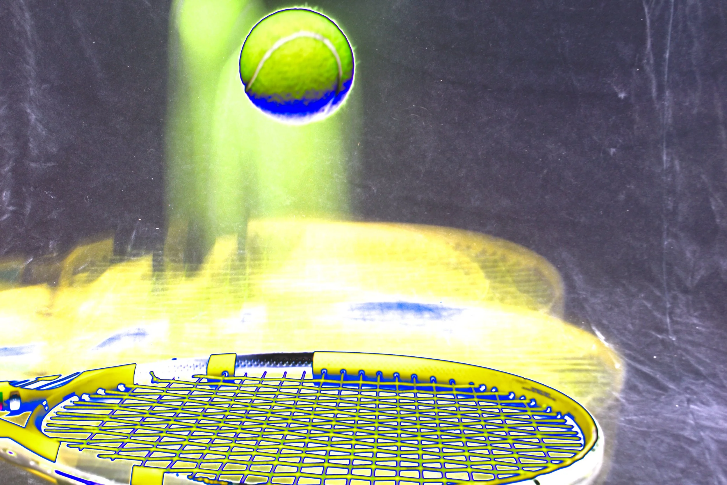In this assignment, I wanted to convey my thoughts about tennis. I chose to use a still life with my the racket for my first image because I wanted to work with an idea that from the outside, tennis seems really simple. I mean, after all, all one uses for tennis is a racket. However, I wanted to shed light on the fact that because tennis is, for the most part, an individual sport, there is a huge mental part to the game. I wanted to convey the mental side of tennis by using inversion and changing the color of my images to work with color theory. Although I was still only using a tennis racket and ball, I think I was able to show a different side to the game of tennis.